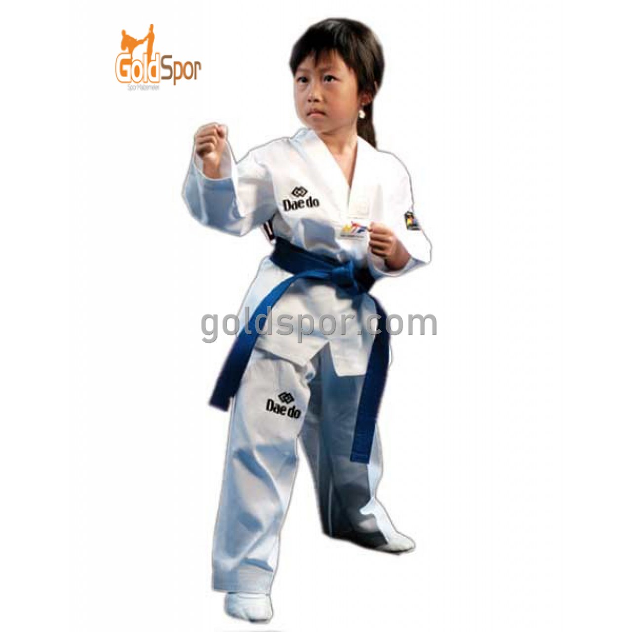 Taekwondoya yeni başlamış sporcuların tercih ettikleri uluslararası taekwondo federasyonu tarafından onaylanmış Daedo beyaz yaka dobok.