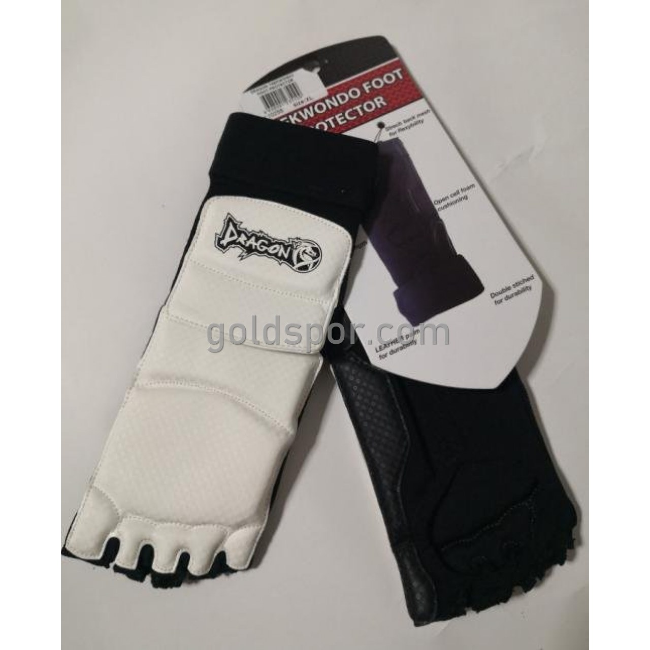Dragon taekwondo ayaküstü koruyucu antreman ve müsabakalarda kullanılabilir.Dış yüzeyi vinly malzeme ile kaplı, iç yüzeyi elastik malzeme ile kaplıdır.Beş parmağın ayrı ayrı gireceği şekilde kullanılmaktadır.Bilek bandajı sayesinde ayağı sıkıca kavradığından kullanımı son derece iyidir